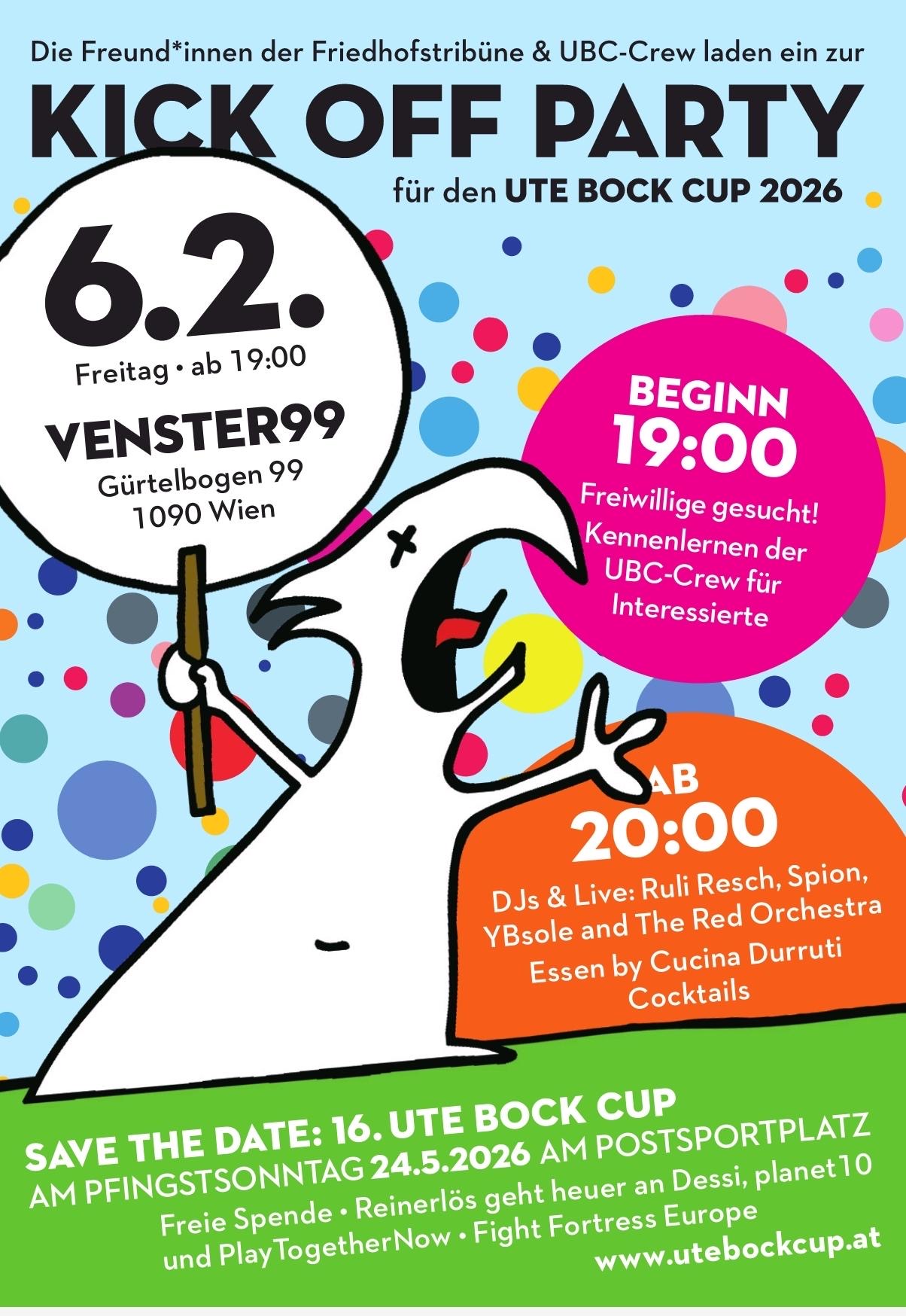 Der 16. Ute Bock Cup rollt auf uns zu. Dieses Jahr wird vieles anders, manches bleibt jedoch gleich. Daher laden wir zur Ute Bock Cup 2026 – Kick Off Party!